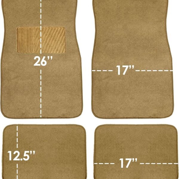 Car Floor Mat 4 Piece Set Driver’s Seat with Heel Pad Deluxe Front 66 x 43 cm Rear 32 x 43 cm Beige