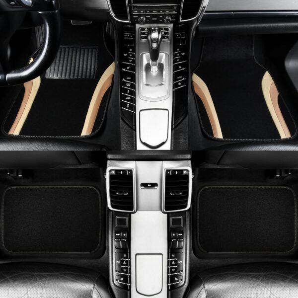 Beige Leather Car Floor Mats, Sporty Waterproof Car Carpet,Universal Automotive Floor Mats Fit for Sedans, Cars, Mid Trucks, Vans, SUV, Set of 4 (Black and Beige)