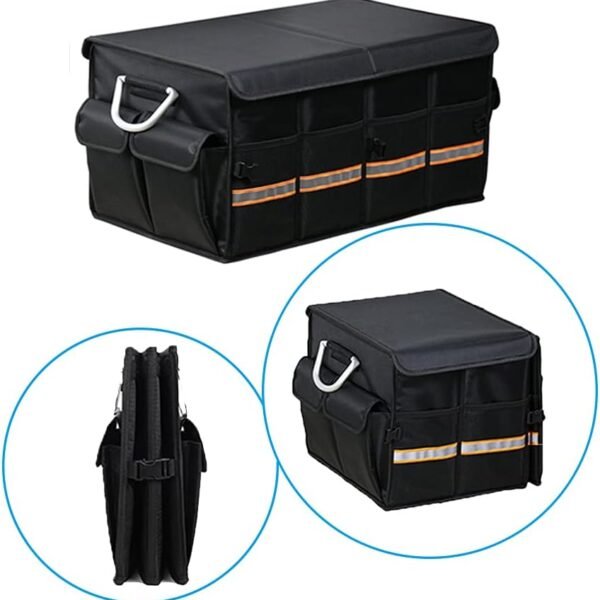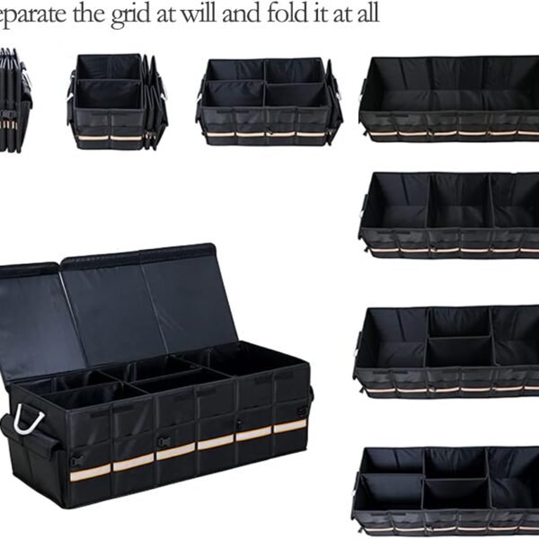 Car Trunk Organizer – Collapsible Trunk Organizer & Lid Foldable Cover Aluminium Alloy Handle Reflective Strip for Auto, SUV, Truck, Minivan (XL Black)