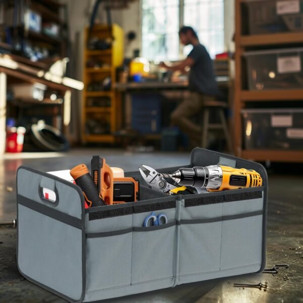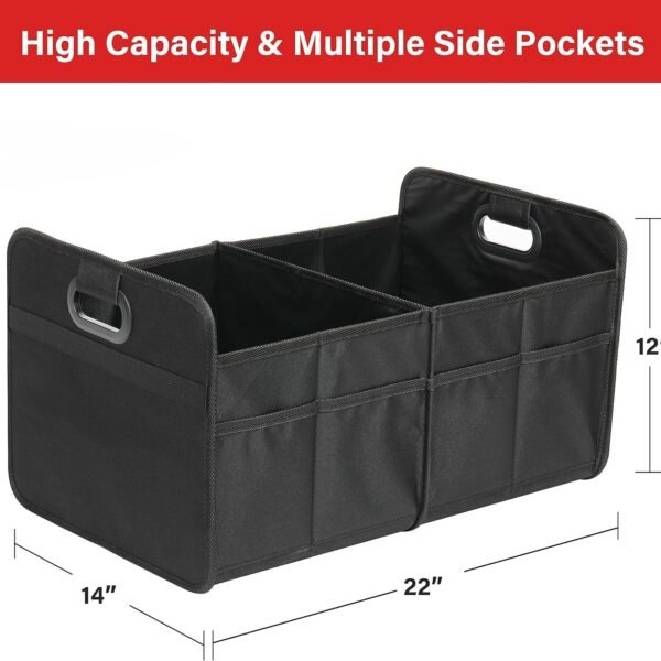2 Compartments Car Trunk Organizer, 600D Oxford Polyester Car Storage, Anti-slip 14″ D x 22″ W x 12″ H Collapsible Trunk Storage, Suitable for SUV, Minivan, Truck, Grey