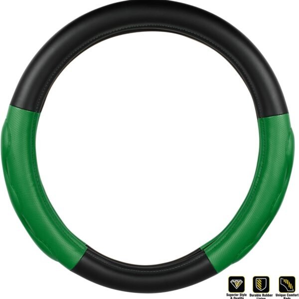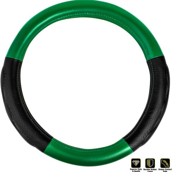 18-Inch Steering Wheel Cover – Solid Green with Black Comfort Grip Pads