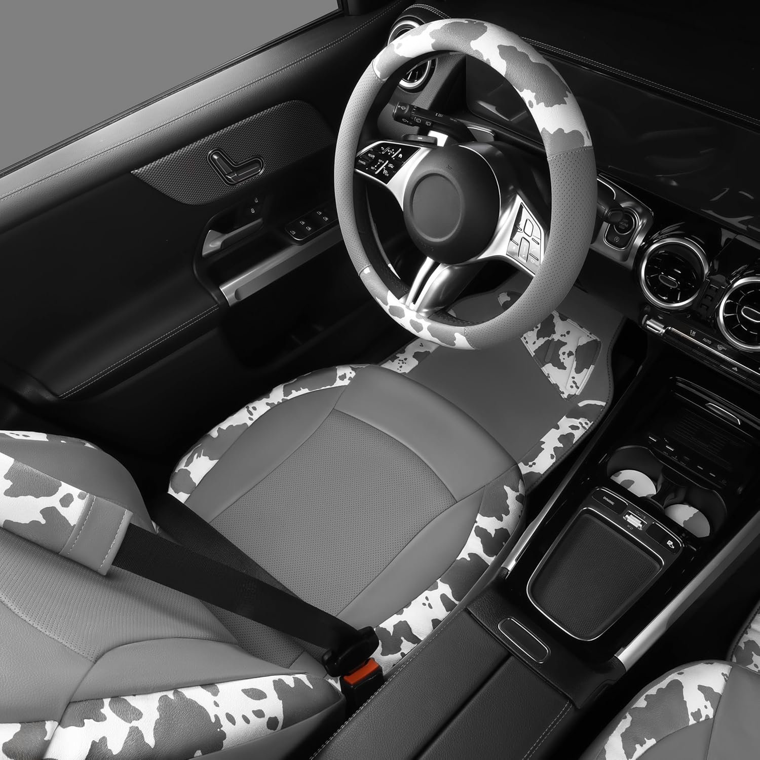 - 【COW PRINT DESIGN】 This cow print car accessories adopt charming cow design style, fresh and simple, lovely and lively, and match with various car interiors, it is easy to get the favor of most men and women, they can not only decorate your car, but also keep your car from dust, tear, water, etc